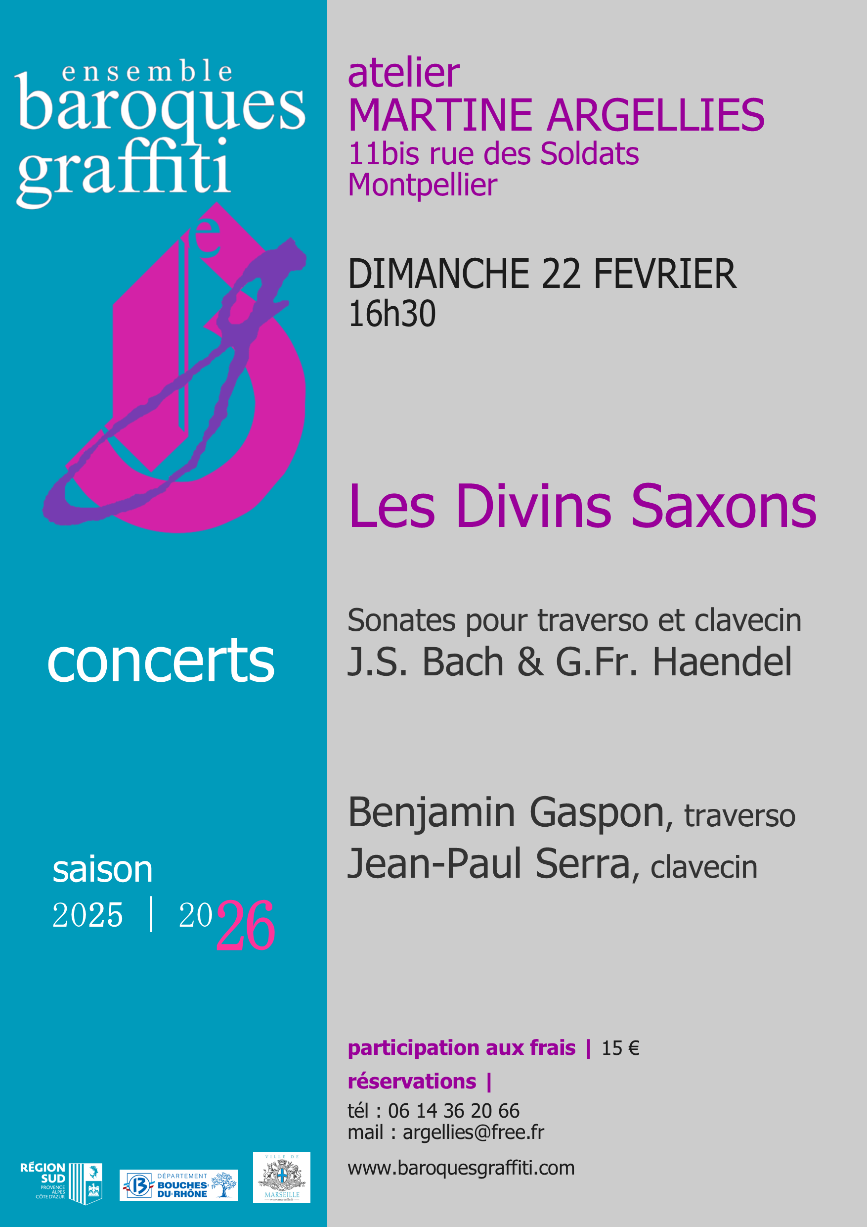 Plein tarif 15€ / tarif réduit 12€ (chômeurs et familles nombreuses)